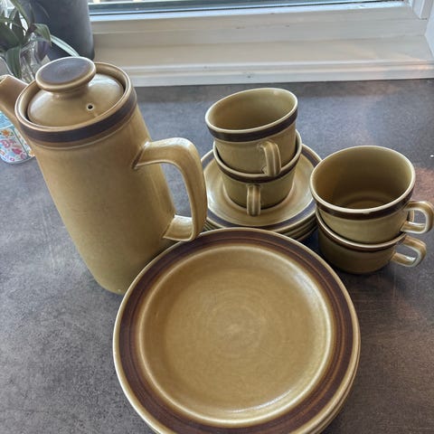 Stavanger Flint"Honey"servise sett i keramikk med gul,grønn,brun farge. Sendes!