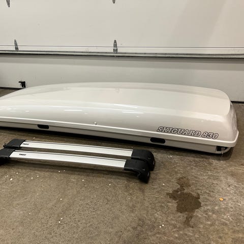 Selger en Thule Skiguard 830. Denne er originalt hvit, men foliert svart. Det er monteringslim rundt folien.