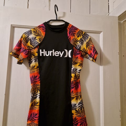 Selger ett sett shorts, t-skjorte og jakke som kan brukes til bading/surfing. T-skjorta er aldrig brukt, jakken og shortsen er brukt noen få ganger. Selges for 600 kr for alt.