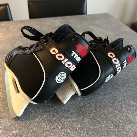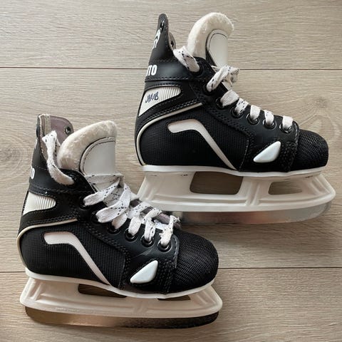 Trex ishockeyskøyter for barn i størrelse 27. Skøytene er svarte og egnet for ishockey. Svært lite brukt.