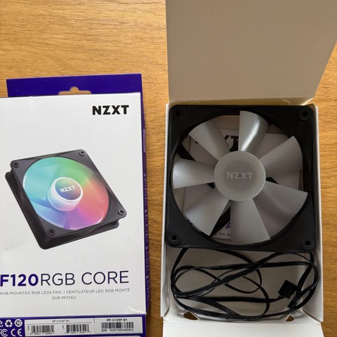 med dimensjoner 120 x 120 x 25 mm. Maks strømstyrke 0,15 A, MTBF 40 000 timer. Vifte med 4-pin PWM-kontakt, hastighet på 1500 rpm, maksimal luftstrøm på 53 CFM, lydtrykk på 25,5 dBA. Kabel med lengde 300 mm, D-RGB kabel 300 x 100 mm og D-RGB kontakt 3-pin (5V).