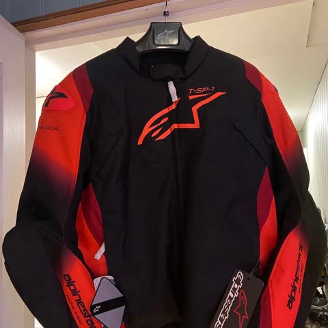 Kjøpt ny til sesongen i fjord. Har kvittering fra XL-moto. Kjørt en tur i regnvær. Kommer med innvendig beskyttelse og regnjakke som kan trekkes over. Dette vil jeg si er en normal XL. Se link for mere spec. Kan sendes