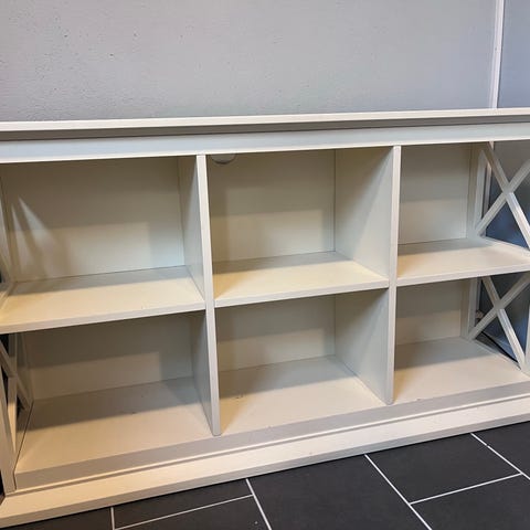 Hemnes hylle, utgått modell. I god stand. Solid møbel. Enkelte bruksmerker, men ingen store merker og ingen skader.