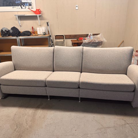 Selger en 3-seters Söderhamn sofa fra IKEA i grått stoff. Trekket er vevd i flere nyanser av grått, noe som gir et fint og levende uttrykk. Sofaen er i veldig god stand – den har stått på et lekeloft og har derfor vært minimalt brukt de siste årene.