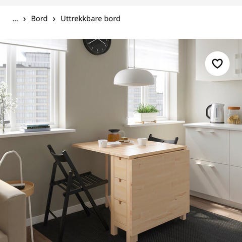 Selger mitt Norden slagbord fra IKEA. Bordet kan brukes med begge lemmer oppe (152 cm), en lem oppe (89 cm) eller begge lemmer nede (26 cm) - noe som gjør det utrolig praktisk i for eksempel mindre leiligheter der man som oftest er få til bords men vil ha mulighet til å invitere flere i blant. Bordet har også seks skuffer med god lagringsplass.