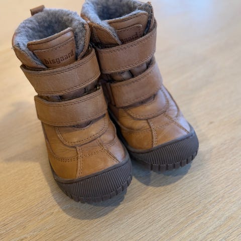Bisgaard barnesko i størrelse 26, unisex modell. Skoene er brune med borrelås og har en myk, isolerende innside.