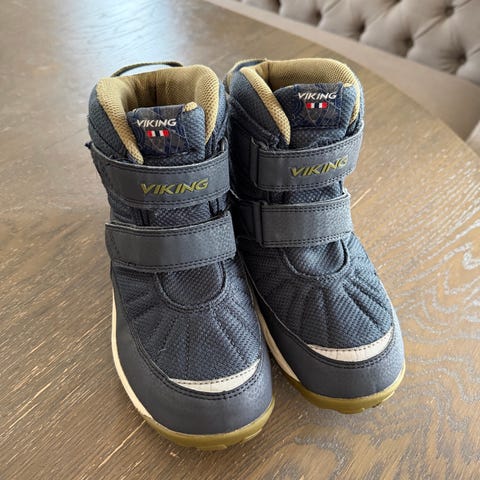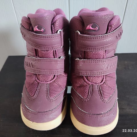 Gode vintersko. Brukt av et barn en sesong. Stort sett feilfrie. Noe tegn slitasje oppe ved kanten. Ellers pene.