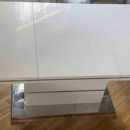 Spisebord i hvit høyglans Lengde 160 , med innlegsplate 220 cm Bredde 90 cm Høyde 75 cm