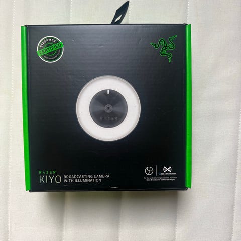 Razer Kiyo kringelys webkamera med justerbart flertrinns ringelys. Kameraet støtter 720p oppløsning ved 60 bilder per sekund og har USB plug-and-play tilkobling. Brukt en gang.