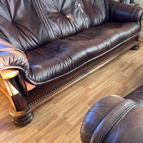 Fremstår som ny , har stått i kjellerstue og er lite brukt .Flott bord følger med . Det er en 3 seter og en 2seter og 1enseter og en stressless med elektrisk motor .Åpen for bud .