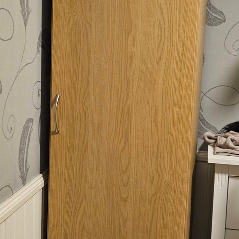 2 skap med innebygd lys med glasshyller (uten hylleknotter) gis bort. Må hentes.