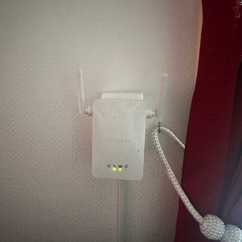 Netgear WN602v2 Router med trådløs tilkobling. 2 stk enheter som forlenger det trådløse nettverket.
