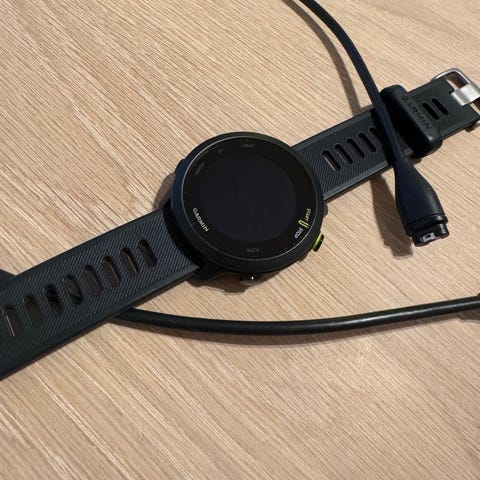 Garmin Forerunner 55 pulsklokke med svart farge. Egnet for trening og daglig bruk, designet for å overvåke aktivitet og helse.
