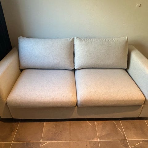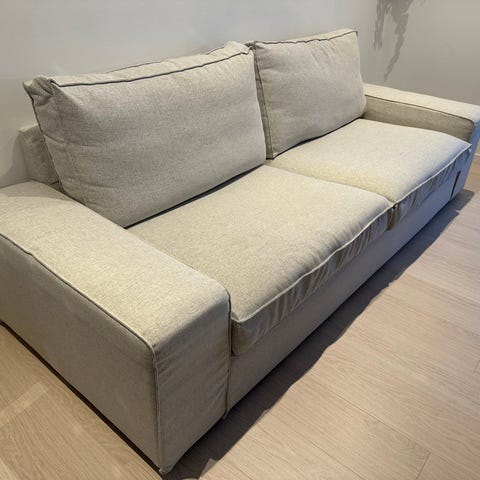 Alex 3-seter sovesofa fra Skeidar, kjøpt i slutten av januar 2025. Fin beige farge. Veldig god å sitte i, enkel å gjøre om til seng.