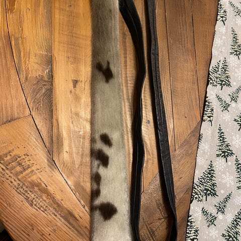 Skinnvotter i kuskinn! De er laget av ekte «hair-on» kuskinn sammen med lammeskinn. De er foret og gjør de derfor utrolig varme. De er også vindtett. Kjøpt brukt noen år siden, brukes ikke lengre.