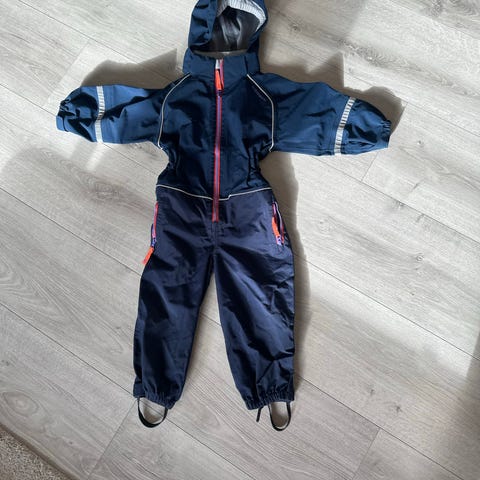2. Blå og grå - str 3 år - lett Foret med fleece. Mangler en knapp til skostrikk.
