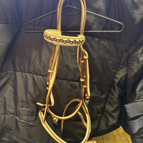 Pent og lite brukt hodelag. Str full. Husker ikke hvilket merke… tror kanskje horze. Det eneste er at jeg klippet av enden på nesereimen under da den var så lang ( bilde)