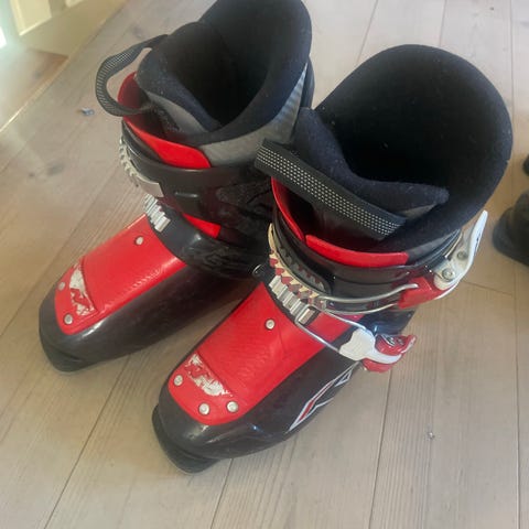 Firefly T50 alpinstøvler i blå og svart farge, størrelse 35,5. Støvlene har fire spenner for justering og er designet for alpinski. Materialet og designet gir støtte og komfort for skikjøring.