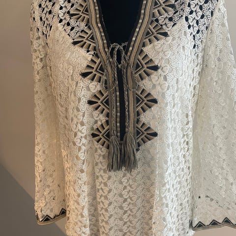 Flott og fargerik kjole som er foret og som faller fint med "tung og myk" viskose. Den måler 56 cm under armene.