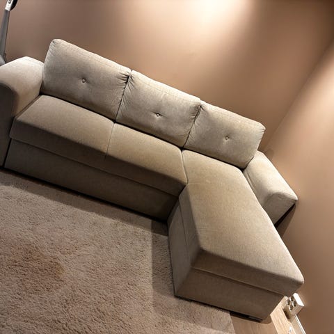Grimstad sovesofa fra Fagmøbler. Sofaen er 4 år gammel og har vært brukt som gjesteseng. Den slås enkelt opp og madras ligger inni når den er sammenslått. Mål som oppslått 200x220. Nypris 20.900 kroner