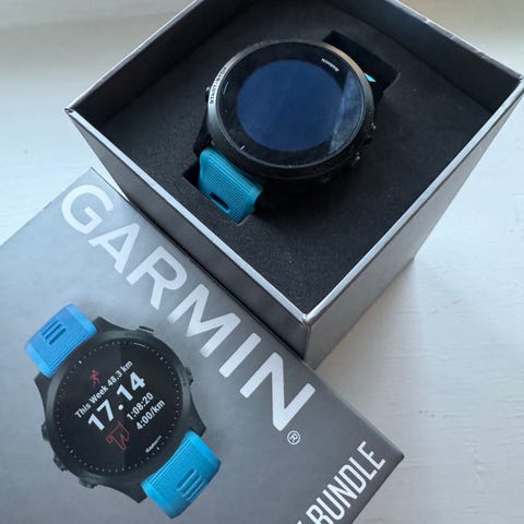 Garmin Forerunner 945 smartklokke i svart farge. Klokken har innebygd GPS og pulsmåler, samt mulighet for kartvisning. Passer for bruk under trening og daglig aktivitet.