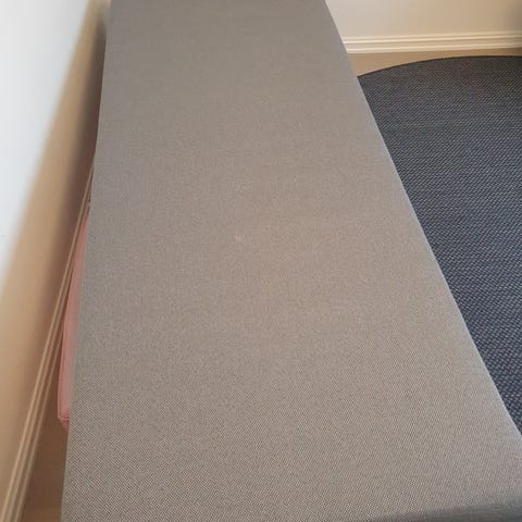 Jysk seng ramme i svart farge. Sengen har en enkel og funksjonell konstruksjon med trelameller som gir støtte for madrass.