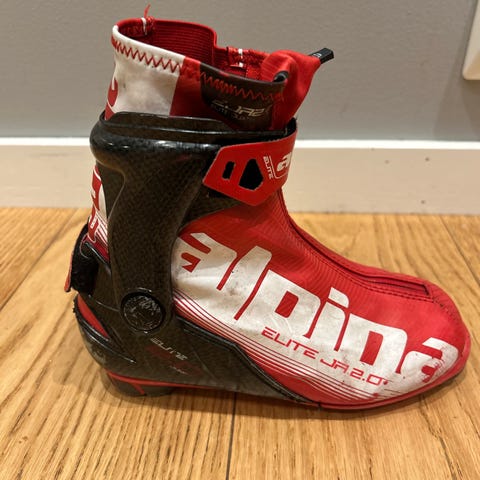 Alpina Skøyteski støvler i svart farge, str 35. Utstyrt med glidelås foran og snøring for justering.