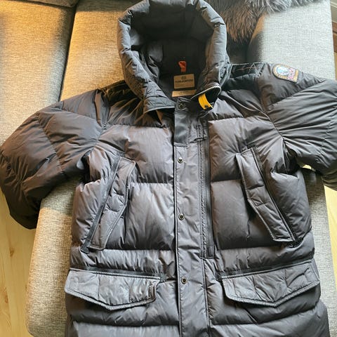 Parajumpers vinterjakke i størrelse XL for herre. Jakken er blå og laget med dun som isolasjonsmateriale, egnet for kalde værforhold.