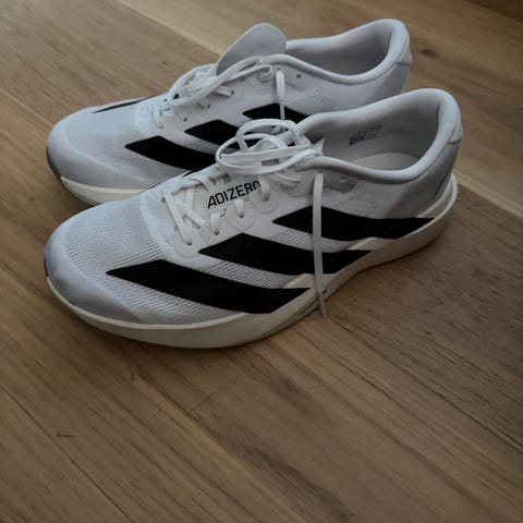 Lite brukt mengdetreningssko fra Adidas (30-40 km totalt), med samme Lightstrike foam i midtdelen som finnes i toppmodeller og konkurransesko hos Adidas. Disse har derimot blitt liggende ubrukt en god stund da jeg har for mange løpesko.