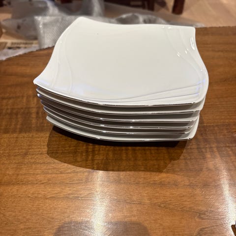 4 sett Firkløveren tallerken. Frokosttallerken 19,5 cm x 19,5 cm. Middagstallerken 25,5 cm x 25 cm. Pris for sett 280kr. Kan sendes, kjøper betaler frakt.