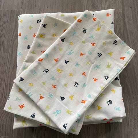 En fra H&M i strl 62-68 og en fra IKEA hvor det ikke står størrelse, men den er litt større