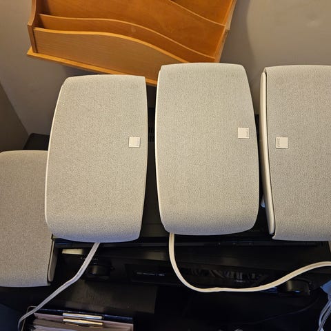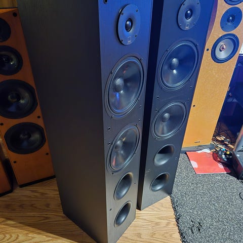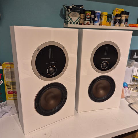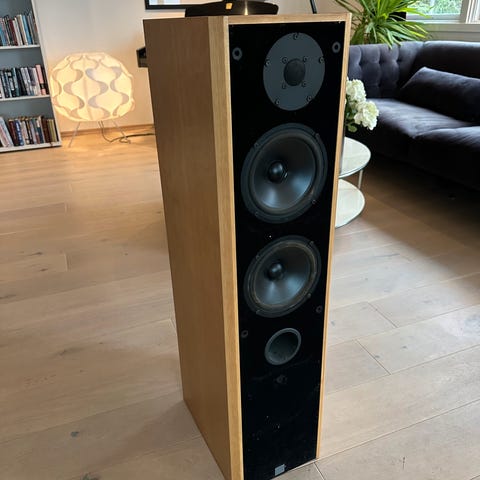 En mere påkostet modell fra Dali, med glassplate med logo i på topp av hvært kabinett.