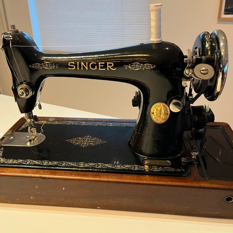 Inkludert: Fotpedal, strømforsyning, to spesialspoler, reservenål.
