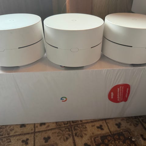 5 stykk Google Wifi mesh gen.1 for trådløst nettverk.