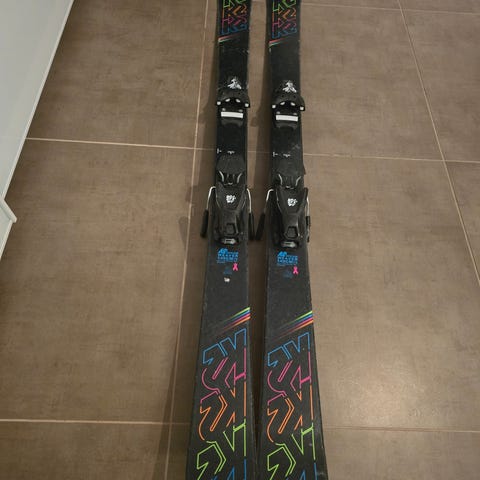 K2 alpinski med bindinger og staver selges.