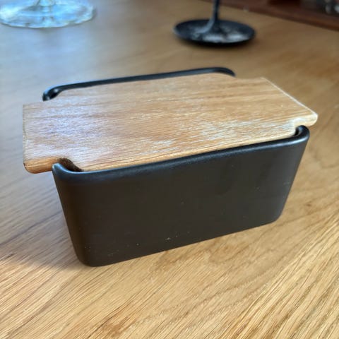 Selger en Eva Solo oppbevaringsboks med håndtak i tre.
