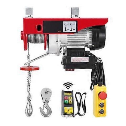 Elektrisk talje med motor som har spesifikasjoner 380V 5A og 220V 12A. Brukes til løfte- og trekkoppgaver. Utstyrt med wire og mekanisk oppheng.