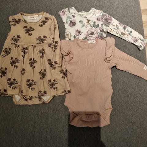 Nydelig langermet body og t-skjorte med søte detaljer fra Newbie i str 86🌸. Kun brukt et fåtall av ganger av ett barn. Selges samlet til 150,-.