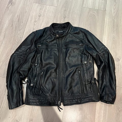 Flott Harley skinnjakke med for. Ubetydelig brukt og i meget god stand. STR XL og passer fra ca 180 cm høyde
