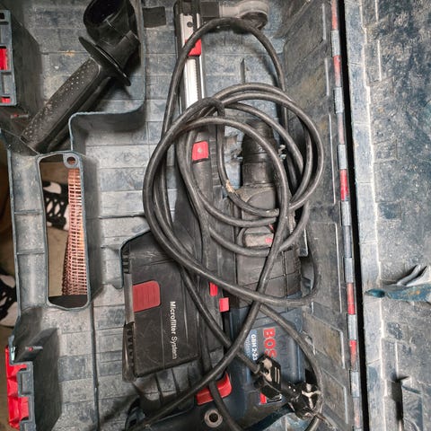 Bosch GBH 5/40 DCE SDS-max borhammer med flere bor og meisler. Leveres i original koffert med bruksanvisning. Egnet for krevende bore- og meisleoppgaver i betong og mur.