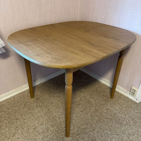 Stolene på bildet følger ikke med, men jeg har fire andre nesten ubrukte spisestoler i eikefiner som kan medfølge for 50,- per stk., hvis interessert. Disse ble opprinnelig kjøpt til bordet når det var nytt i 2019.