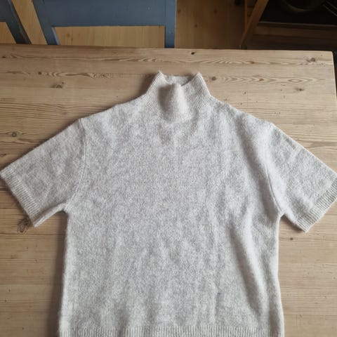 Gina Tricot genser i størrelse S for kvinner. Genseren er hvit med sorte striper og laget har 17% ull og 6% angora.