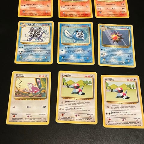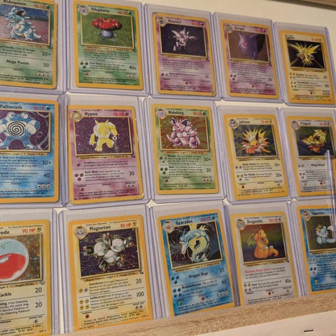 Pokemon kort i varierende stand fra base set, jungle, fossil, team rocket.