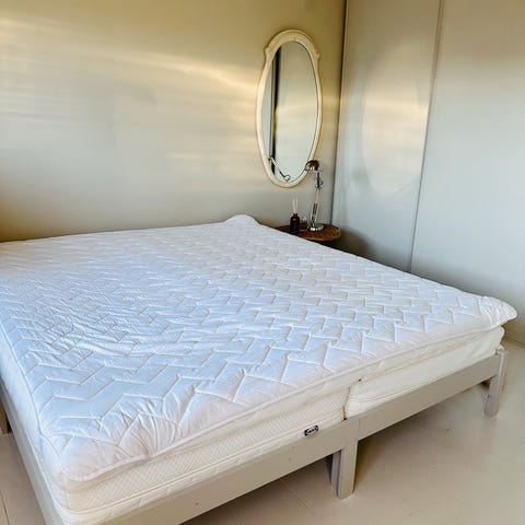 Pen dobbeltseng (medium hardhet) med lett tilgjengelig lagerplass under rammemadrassen. 8 cm latex overmadrass . Kjøpt i 2019, og har stått på et gjesterom på en hytte. Derav lite brukt, og fremstår nærmest som ny. Listepris i 2019 var kr. 16.500 (Møbelringen), tilsvarer nok rundt kr. 25.000 i dag. Kan etter avtale leveres innenfor rimelig avstand fra Tønsberg.