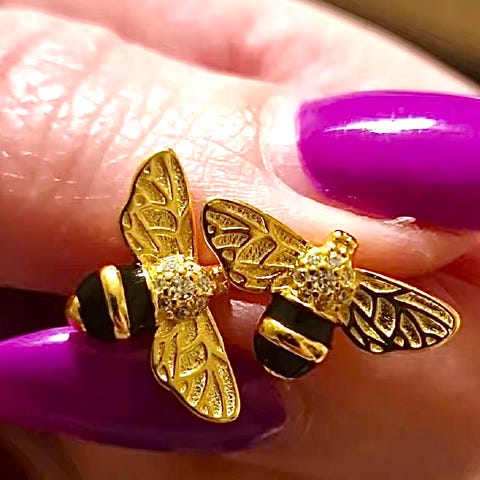 Nydelig ørepynt i Ekte Sølv belagt i Ekte 18 Karat Gull med vakker lilla stein.