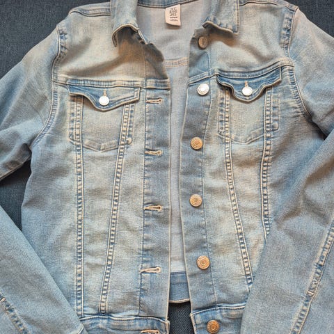jakke i svart farge, størrelse 158, til jente. jakken er H&M. Jakken gir et enkelt ytterplagg for kjøligere vær og er lagd for barn. :P