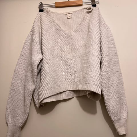 Mintgrønn/lys blå, cropped strikkagenser med fastmonterte perler. Se også mine andre annonser.