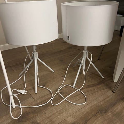 Pene bordlamper selges 350 ,- stk. Får med 2 stk ubrukte PR home lampeskjermer. Lampen er ca 55 cm høy. Det er hvite lampeskjermer som føler med.