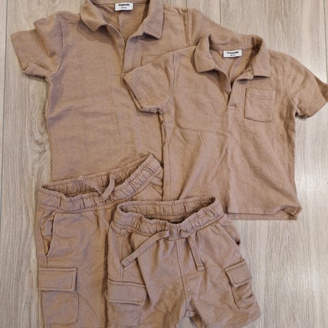 Søskenmatch i str. 86 og 116, bestående av skjorte og cordfløyels-bukse fra Zara.