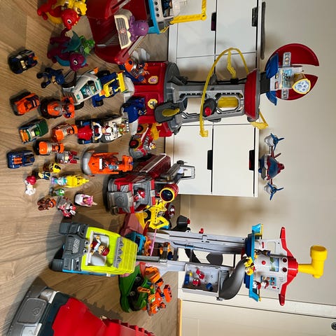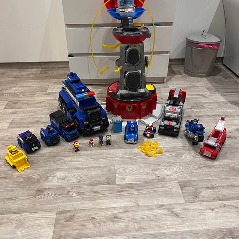 Selger en stor samling Paw Patrol-leker i god brukt stand. Pakken inneholder flere kjøretøy, figurer og et utkikkstårn/lekesett